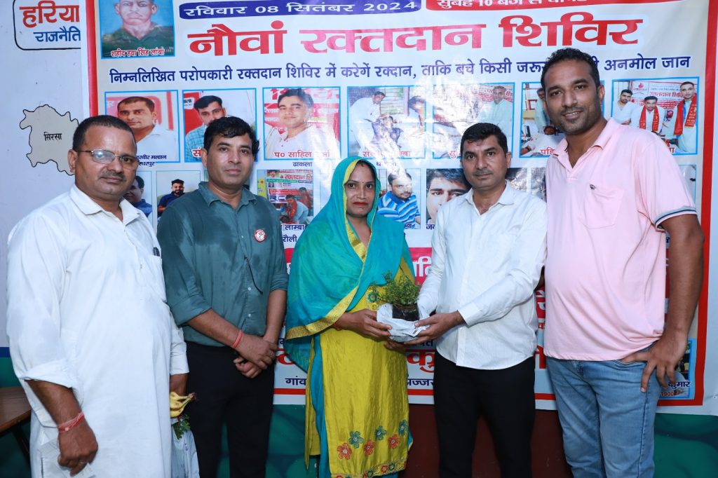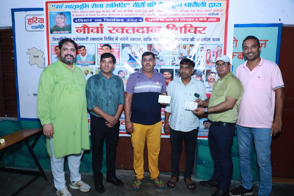 झज्जर। जिला मुख्यालय के अंतिम छोर पर बसे वीरों की देवभूमि कहे जाने वाले गांव धारौली की सामाजिक संस्था मां-मातृभूमि सेवा समिति द्वारा 1965 भारत-पाक युद्ध में देश की रक्षा के लिए लड़ते हुए शहीद होने वाले लांस नायक हवा सिंह लांबा धारौली के सम्मान में जिला रेडक्रॉस सोसायटी, झज्जर के सहयोग से शहीद हवा सिंह लांबा राजकीय माध्यमिक विद्यालय, धारौली में आयोजित नोवे रक्तदान शिविर में दूसरों को जिंदगी देने के लिए तीन महिलाएं सहित 97 युवाओं ने रक्तदान किया । रेड क्रॉस सोसाइटी, झज्जर से दीपक कुमार की टीम मोजूद रही । धारौली के दंपति श्री धर्मेंद्र लांबा ने 11वीं बार और उनकी धर्मपत्नी श्रीमती शर्मिला लांबा ने तीसरी बार रक्तदान किया I जिला झज्जर के अंबोली गांव की मनीषा देवी और रेवाड़ी के सुधराना गांव की लक्ष्मी सिंह ने रक्तदान किया। रक्तदान शिविर का शुभारंभ मुख्य अतिथि धारौली के दंपति श्री धर्मेंद्र लांबा ने 11वीं बार और उनकी धर्मपत्नी श्रीमती शर्मिला लांबा ने तीसरी बार रक्तदान करके किया। जिला रेवाड़ी के सुधराना गांव की रक्तदानी लक्ष्मी सिंह और 37 बार रक्तदान कर चुके रक्तदानी नितेश भौरिया , प्रो. अर्बन युवा रेडीमेड स्टोर, कोसली ने विशेष अतिथि के तौर पर शिरकत करते हुए रक्तदानियों की होंसला अफजाही की। शिक्षा के साथ साथ सामाजिक सरोकार का दायित्व भी बेखुबी निभा रहे रक्तदानी मास्टर श्री हरबीर मल्हान गिरधरपुर निवासी ने रक्तदान शिविर कार्यक्रम की अध्यक्षता की। 21 बार रक्तदान कर चुके युद्धवीर सिंह लांबा, अध्यक्ष, मां-मातृभूमि सेवा समिति, वीरों की देवभूमि धारौली ने बताया कि रक्तदानी मंजीत अम्बोली, प्रो. श्री हँस बैग्स हाउस, कोसली, मास्टर श्री हरबीर मल्हान गिरधरपुर निवासी, रक्तदानी सोनू धारौली प्रो. सोनू मोटर वाइंडिंग सेंटर कोसली, झाडोदा निवासी जिला रेवाड़ी के रक्तदानी दीपक सोलंकी, कोसली के कमला मेडिकल स्टोर के प्रो. विक्रम यादव, मास्टर श्री रोहित यादव कोसली, भाकली के रक्तदानी मास्टर श्री सतीश यादव, मास्टर पवन कुमार जी, गांव धनीरवास निवासी आदि की तरफ से रक्तदान शिविर में विशेष सहयोग रहा। पर्यावरण संरक्षण को समर्पित युवा रक्तदानी मंजीत अम्बोली जी, श्री हँस बैग्स हाउस, कोसली ने पहले 50 रक्तदाताओं को एक -एक जेड प्लांट निशुल्क भेंट स्वरूप दिया I