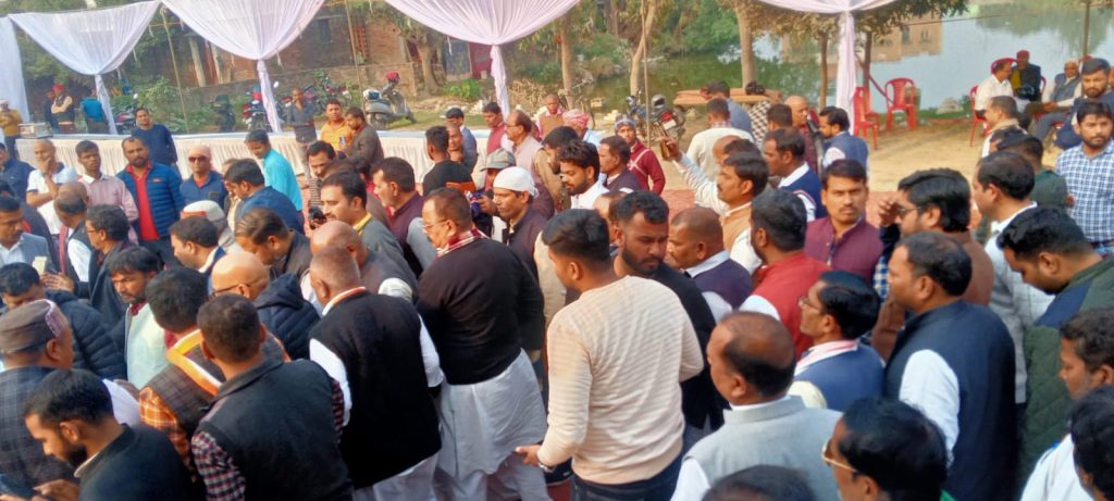 सहजनवा गोरखपुर। गीडा थाना क्षेत्र के देईपार गांव के मृतक युवा कांग्रेस नेता प्रभात पांडेय के ब्रह्म भोज /प्रसाद भोज में प्रदेश कांग्रेस अध्यक्ष अजय राय का आगमन हुआ। उन्होंने युवा कांग्रेस नेता प्रभात पांडेय के चित्र पर पुष्पांजलि अर्पित करके श्रद्धा सुमन अर्पित किया तथा परिजनों से मिलकर उनके प्रति शोक संवेदना प्रकट की। बताते चलें कि विगत 18 दिसंबर को राजधानी लखनऊ में कांग्रेस पार्टी द्वारा विधानसभा पर प्रदर्शन के दौरान गोरखपुर के इस युवा कांग्रेस नेता की संदिग्धावस्था में मौत हो गई थी।बातचीत में उन्होंने बताया कि प्रभात पांडेय के रूप में कांग्रेस ने अपना एक नेता, एक सच्चा सिपाही खो दिया है। कांग्रेस पार्टी सदैव इस कार्यकर्ता के परिवार के साथ खड़ी रहेगी। कांग्रेस वर्किंग कमेटी में मैंने मुद्दा उठाया है कि इस परिवार को एक सरकारी नौकरी प्रदान की जाए। बाकी विपक्षी भाजपा तो ओछी राजनीति करती ही है। जैसा कि अंतिम संस्कार के दीन लोगों ने देखा। इस अवसर पर प्रदेश कांग्रेस उपाध्यक्ष विश्व विजय सिंह, महिला प्रदेश कांग्रेस अध्यक्ष शहला अहरारी ,कांग्रेस जिला अध्यक्ष निर्मला पासवान, अमरेंद्र प्रताप मल्ल, मनोज यादव, योगेश प्रताप सिंह, परमेश्वर पांडेय, ग्राम प्रधान प्रतिनिधि चंद्र भूषण पांडेय,सैयद जमाल,आलोक सिंह , आलोक मल्ल सहित दर्जनों की संख्या में कांग्रेसी उपस्थित रहे।।