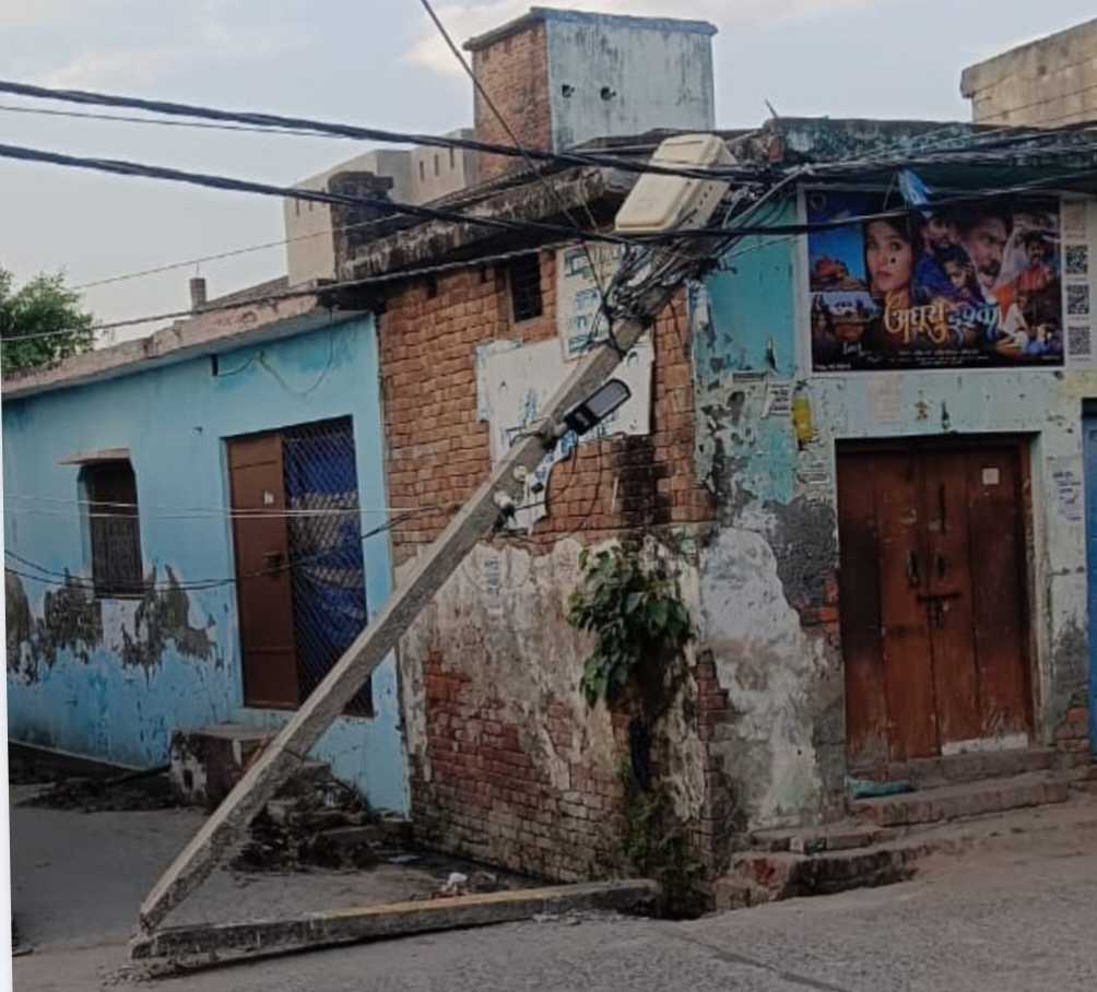 रास्ते में गिरा बिजली का खंभा किसी भी वक्त हो सकता है हादसा