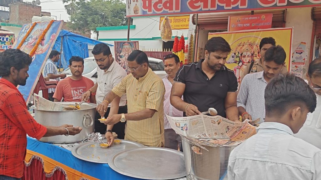 महाराजगंज। ज्येष्ठ माह के पावन अवसर पर स्थानीय विधायक जय मंगल कन्नौजिया ने मंगलवार को विधिवत रूप से हनुमान जी की पूजा-अर्चना की। पूजा का आयोजन नगर के सक्सेना तिराहे पर किया गया जहाँ भारी संख्या में श्रद्धालु उपस्थित हुए। विधायक ने स्वयं पूजा सम्पन्न कराई और श्रद्धा भाव से हनुमान चालीसा का पाठ भी किया।पूजा के उपरांत उन्होंने उपस्थित जनसमूह को महाप्रसाद वितरित किया। आयोजन में बूंदी शरबत का प्रसाद वितरित किया गया। महाप्रसाद वितरण के दौरान विधायक ने कहा कि हनुमान जी शक्ति भक्ति और सेवा के प्रतीक हैं। उनका आशीर्वाद हमें हर संकट से उबारने वाला होता है। उन्होंने बताया कि इस प्रकार के धार्मिक आयोजनों से समाज में एकता, शांति और सद्भाव की भावना को बल मिलता है।
