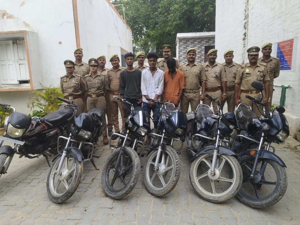 पुलिस टीम उपनिरीक्षक संतोष कुमार सिंह, उप निरीक्षक रोहित वर्मा ,दीपा यादव ,कांस्टेबिल विकास यादव, शिवम वर्मा, भानु प्रताप मौर्य रमेश जोशी, ने तीन आरोपियों को गिरफ्तार किया है, जिनके पास से चोरी की छः मोटरसाइकिल बरामद हुई हैं।1- सोहेल अहमद उर्फ भोलू पुत्र सुभानल्लाह निवासी ग्राम उरुवा बाजार जनपद गोरखपुर