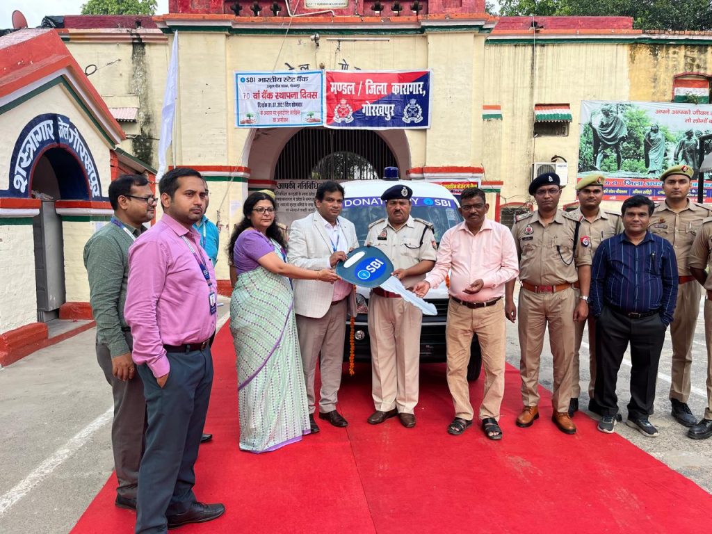 गोरखपुर। भारतीय स्टेट बैंक के 70 वें स्थापना दिवस के अवसर पर कुमार आनन्द उप महाप्रबन्धक, भारतीय स्टेट बैंक प्रशासनिक कार्यालय गोरखपुर के गरिमामयी उपस्थिति में जिला कारागार गोरखपुर में निरूद्ध बन्दियों के उपचार के लिये 01 अदद एम्बुलेंस वाहन सप्रेम भेंट की गई, जिसकी चाभी जेल अधीक्षक श्री दिलीप कुमार पाण्डेय को सौपा गया। इस वाहन की कुल लागत 8,72,000 रूपये है जिससे कारागार में निरूद्ध बन्दियों का उपचार और सहज एवं सुगम हो सके ।इस अवसर पर भारतीय स्टेट बैंक प्रशासनिक कार्यालय गोरखपुर के सारिका चतुर्वेदी, कल्याण प्रकाश, तुषार भाटिया व जेलर अरूण कुमार कुशवाहा, डिप्टी जेलर विजय कुमार डिप्टी जेलर अमिता श्रीवास्तव एवं अन्य कारागार कर्मी उपस्थित रहें।