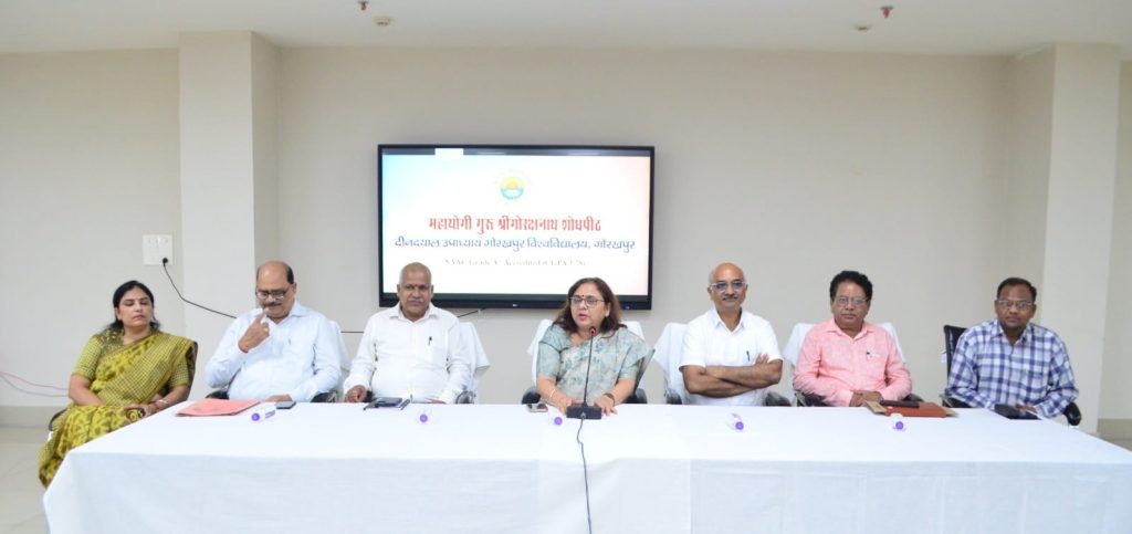 गोरखपुर। दीनदयाल उपाध्याय गोरखपुर विश्वविद्यालय की कुलपति प्रो. पूनम टंडन की अध्यक्षता में गोरखपुर जनपद के स्ववित्तपोषित महाविद्यालयों के प्रबंधकों एवं प्राचार्यों की एक महत्वपूर्ण बैठक विश्वविद्यालय के गुरु गोरखनाथ शोधपीठ स्थित कमेटी हॉल में सम्पन्न हुई। यह बैठक आगामी शैक्षणिक सत्र 2025-26 की तैयारियों के संदर्भ में आयोजित की गई थी। अपने उद्बोधन में कुलपति प्रो. टंडन ने कहा कि स्ववित्तपोषित महाविद्यालय पूर्वांचल में उच्च शिक्षा की उपलब्धता और विस्तार में अत्यंत महत्वपूर्ण भूमिका निभा रहे हैं। यह बैठक संवाद के माध्यम से साझा चिंताओं, सुझावों और भविष्य की दिशा तय करने हेतु आयोजित की गई है।