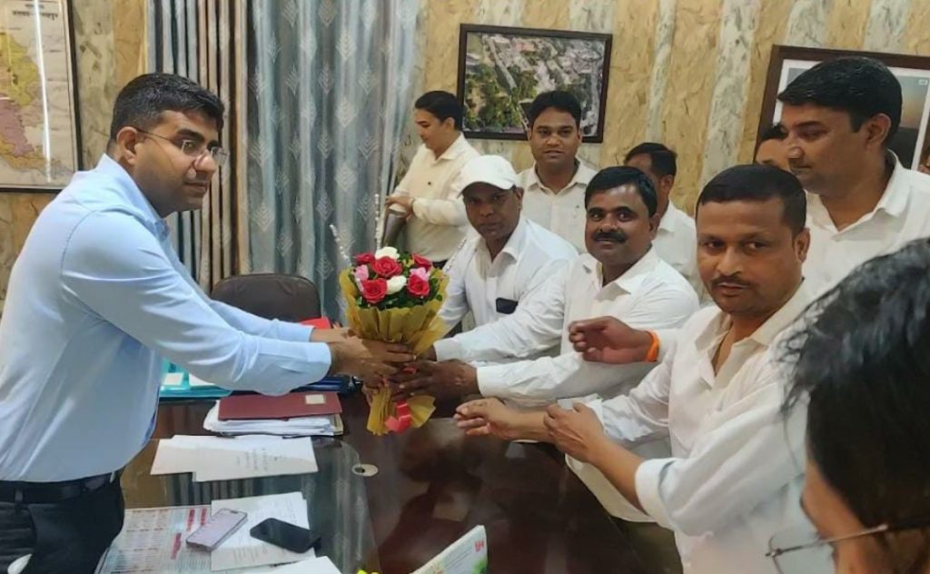 गोरखपुर। उत्तर प्रदेश पंचायती राज ग्रामीण सफाई कर्मचारी संघ के जिलाध्यक्ष रमेश भारती ने अपने पदाधिकारीयों के साथ गोरखपुर के नवागत जिलाधिकारी दीपक मीणा को उनके कार्यालय पर पुष्प गुच्छ देकर शिष्टाचार भेंट किया तथा उनका कुशल क्षेम जाना।