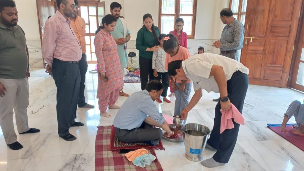 सहजनवा गोरखपुर। गीडा थाना क्षेत्र स्थित के इंडिया ग्लाईकॉल्स लिमिटेड के बिजनेस हेड एस के शुक्ल के कुशल मार्गदर्शन एवं प्लांट हेड शैलेंद्र पांडेय के नेतृत्व में मां दुर्गा जी का पूजन पूरे विधि विधान से किया गया। नवरात्रि के नवमी के दिन कन्या पूजन, हवन, आरती एवं भोग वितरण किया गया। इस अवसर पर कन्या पूजन प्लांट हेड शैलेंद्र पांडेय जे द्वारा कन्याओं का पांव पखार कर उनको भोग ग्रहण कराकर पूरे विधि विधान से पूजा। सम्पन्न किया गया। इस अवसर पर दशरथ मिश्र, आशीष गुप्ता, रजनीकांत पांडेय, अखिलेश कुमार शुक्ल, धर्मेंद्र मालिक, नागेंद्र कुमार सिंह, दुर्गेश मनी त्रिपाठी, राजीव त्रिपाठी, अमित कश्यप, सुगंधा अधिकारी, मधु, प्रियंका, डॉ कमलेश सिंह, अनिल सिंह व अन्य कर्मयोगी उपस्थित रहे। कार्यक्रम की व्यवस्था प्रशासन विभाग द्वारा किया गया।